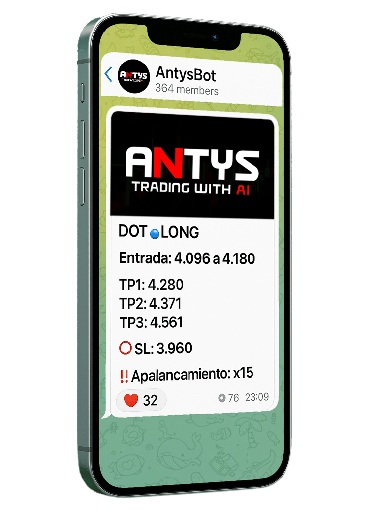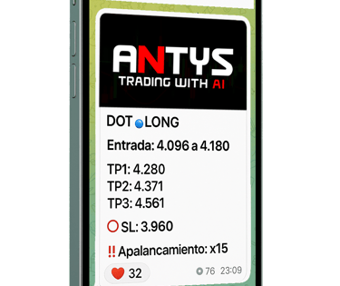 AntysBot monitorea el mercado de criptomonedas 24/7 buscando las mejores oportunidades de movimiento precisas conectadas directamente a Telegram. Utiliza más de 75 indicadores técnicos para identificar oportunidades de inversión en tiempo real, adaptándose a distintos estilos de trading.